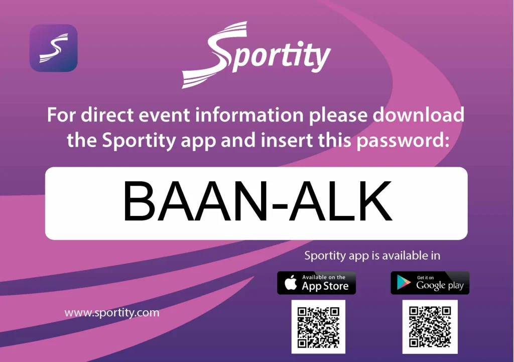 Alle informatie over de wedstrijd vind je ook in de Sportity App. Dus download deze app en vul onderstaand password in. Dan blijf je op de hoogte van belangrijke mededelingen en de definitieve startlijst.